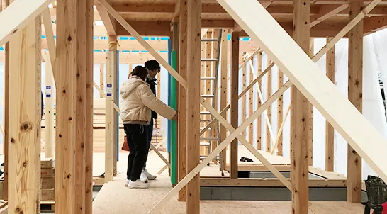 施工中の現場をご覧いただき、進捗状況を確認いただきながら、内装や外装の素材やコンセントの位置など、細かい場所を、段階に応じてご確認いただけます。