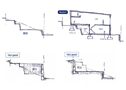 「段差を生かせば、土地をフラットに造成する必要もなく、むしろ面白い家になると思います」とアドバイスをくれました。