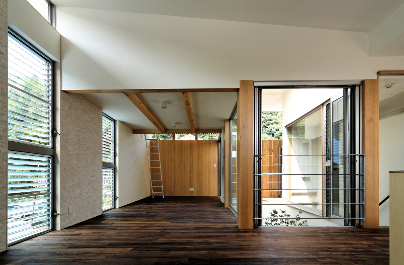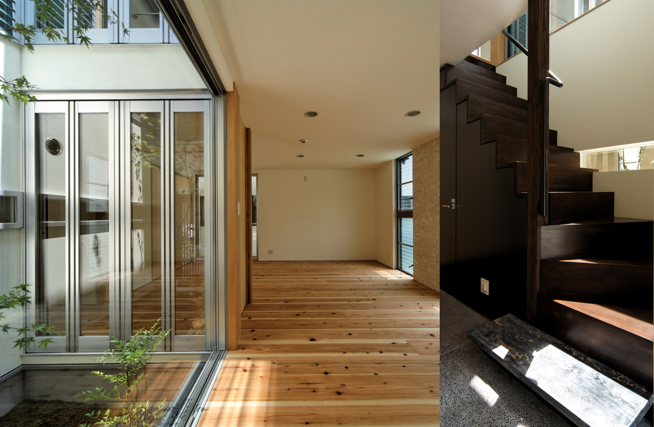 中庭に面する設計とすることで、光と風を呼び込み、隣家の視線を気にせず、窓を開けたまま過ごせる住まいを実現しています。