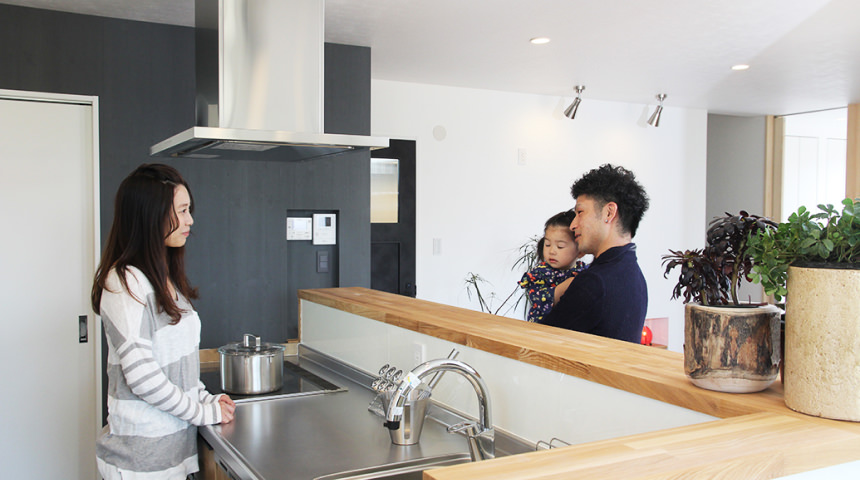 私自身、結婚する前から一軒家を建てる夢がありました。結婚後、アパート暮らしだったのですが、子どもをのびのび育てたいこと、家賃を払い続けるのがもったいないこと、マイホームへの夢など、日々、想いを募らせていました。もともとホームページや雑誌で、いろんな家の施行例を拝見するのが大好きなのですが、地元の太昭組のHPを見て「かっこいい!」とひと目惚れ。それからいくつものオープンハウスに参加して、話を聞きました。見積もりやプランを見せてもらうと、イメージとで予算がぴったり。設計の迫谷さんが好みや希望をきちんと受け止めてくださったので、太昭組に決めました。