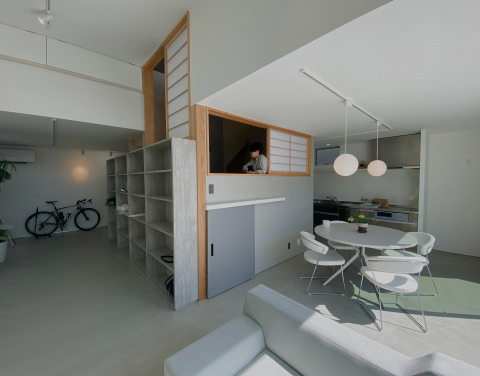 最後に、お気に入りの場所を聞いてみました。ご主人は「1階のダイニングですね。夜、ダイニング側を暗くして和室に明かりを灯すと、和室の障子がまるで行灯のように暖かい光と影を描くのが好きです」、奥様は「屋上ですね。ふと夕日を見たりとか、朝日を眺めたりとか。子どもがぐずっている時にも役立ちます。暖かい季節になったら、友達とバーベキューもしたいですね」と、多彩な空間を持った新居「カタツムリ」ならではでの暮らしに目を細めていました。